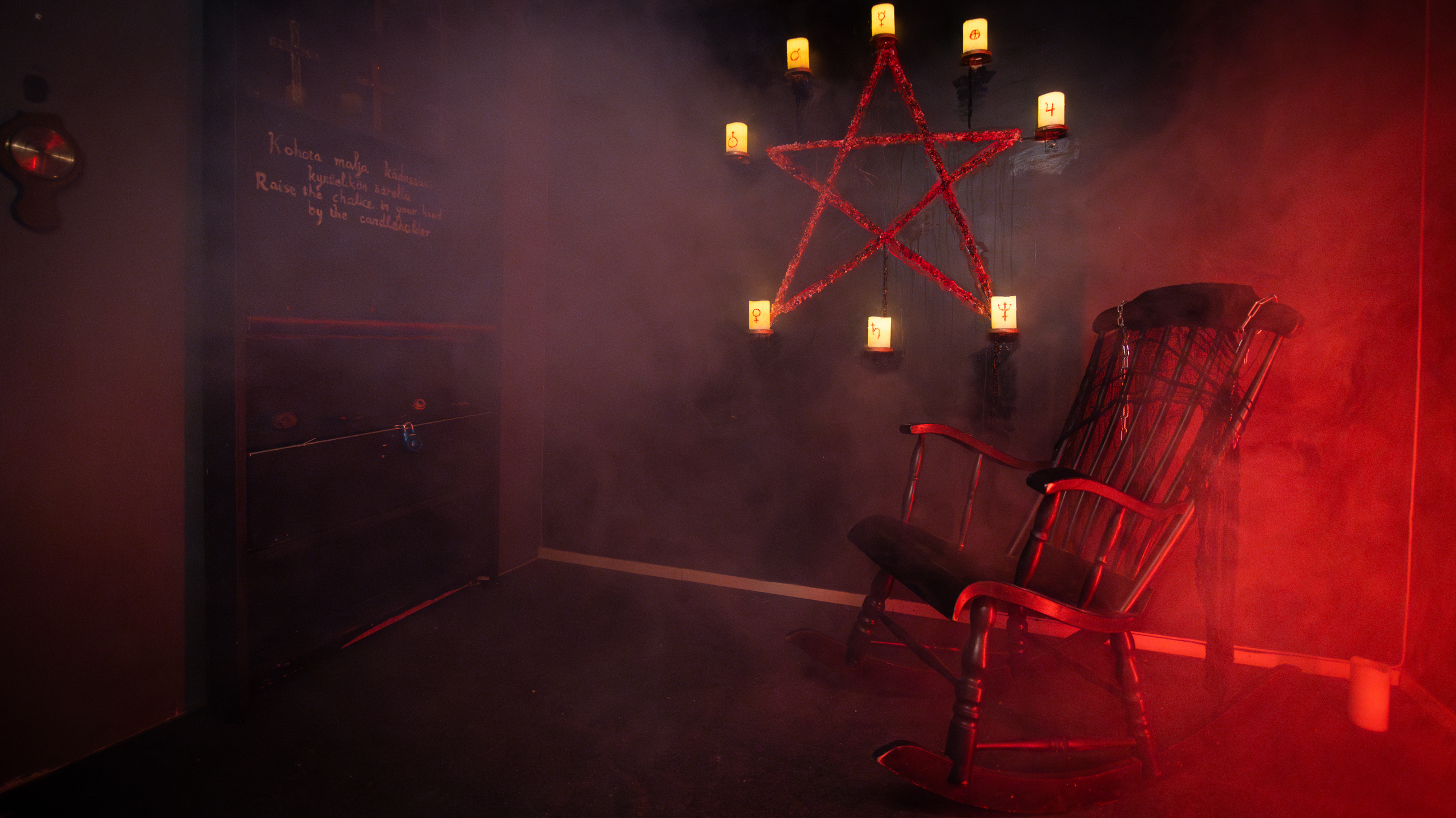 Observera att spelet är skräcktema och att du kan bli skrämd i spelet. Spelet innehåller övernaturliga element som kanske inte passar alla spelare. Källaren ligger i källarutrymmet och spelas, till skillnad från andra spel, med skor på. Tyvärr är källaren inte rullstolsanpassad.